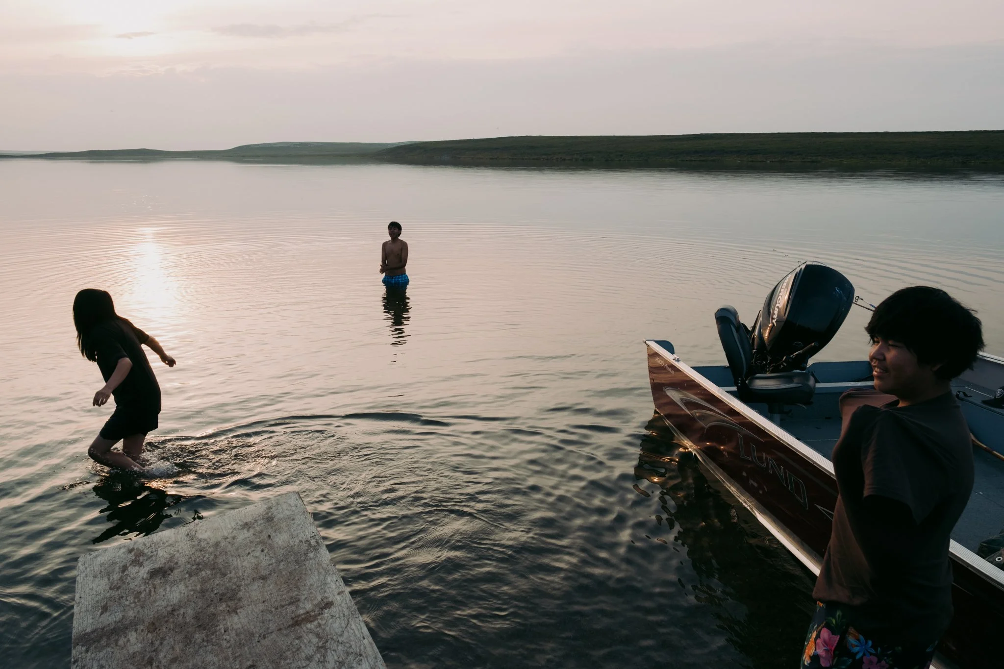 An evening swim after a long day monitoring caribou on the barrenlands.